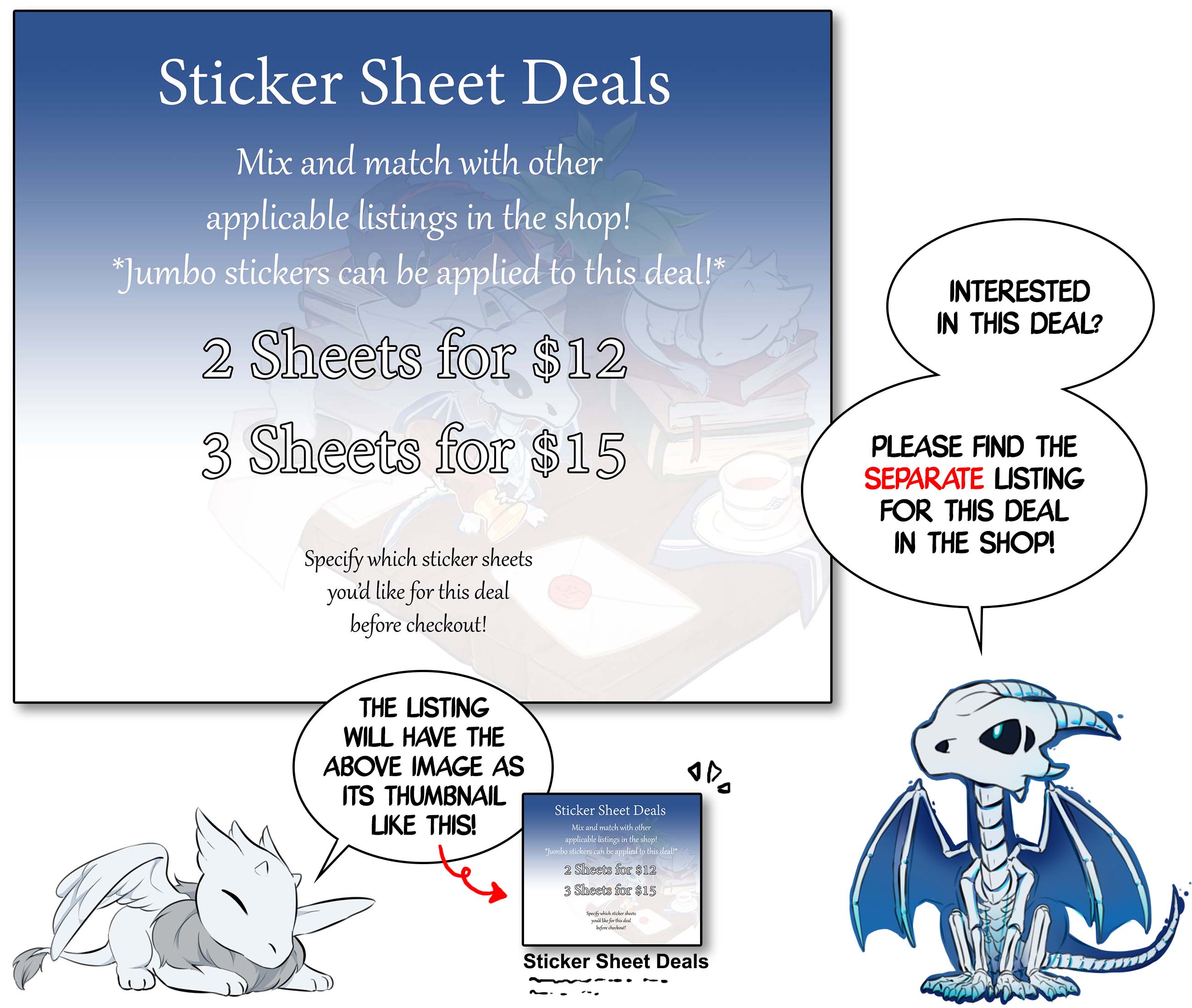 4x6 in. matte vinyl sticker sheets featuring the unicorn duo -- Luca & Umbra.